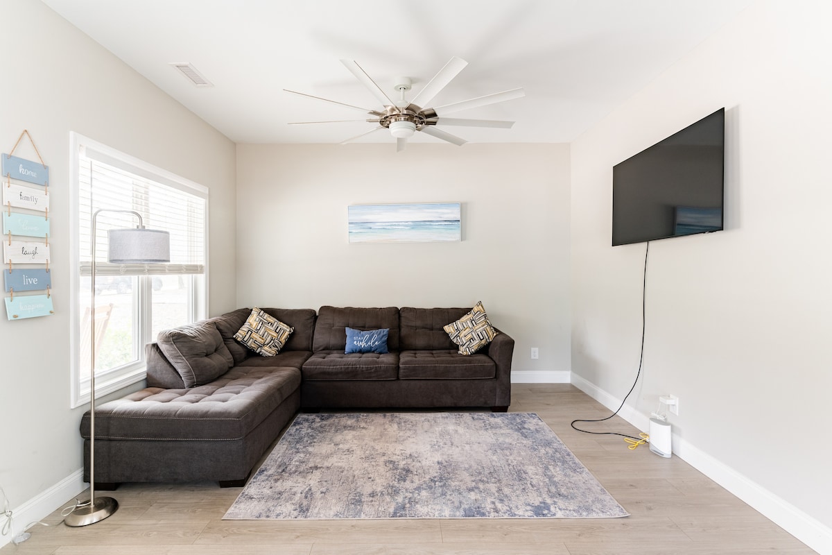 Denne centralt beliggende, hundevenlige bolig i én etage giver dig mulighed for at skabe perfekte dage på ingen tid. Ombygget for nylig i 2022. Mindre end 3 km til stranden, få minutter fra restauranter og flere golfbaner inden for rækkevidde! Indenfor finder du trægulve, et åbent opholds-/køkkenområde med masser af plads til at samles og et charmerende tilstødende rum, der indeholder et bord med plads til seks personer. Tv i alle rum med streaming og Serta-madrasser for at sikre en dejlig nattesøvn!
