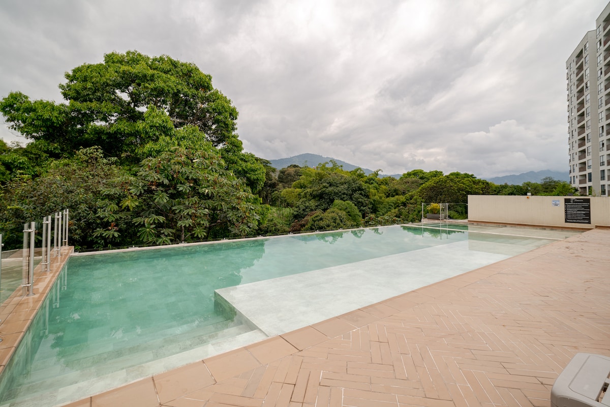 **Charmerende lejlighed i Armenien** Nyd et uforglemmeligt ophold i vores lejlighed med udsigt over bjergene, beliggende på fjerde sal. Beliggende i et fremragende område i Armenien, vil du være tæt på parker, indkøbscentre, klinikker, restauranter og meget mere. Med nem adgang til offentlig transport kan du nå turistmål som Circasia, Salento og Filandia. Bygningen tilbyder swimmingpool, jacuzzi, sauna, billard og sociale områder. Perfekt til dit eventyr i Eje Cafetero!