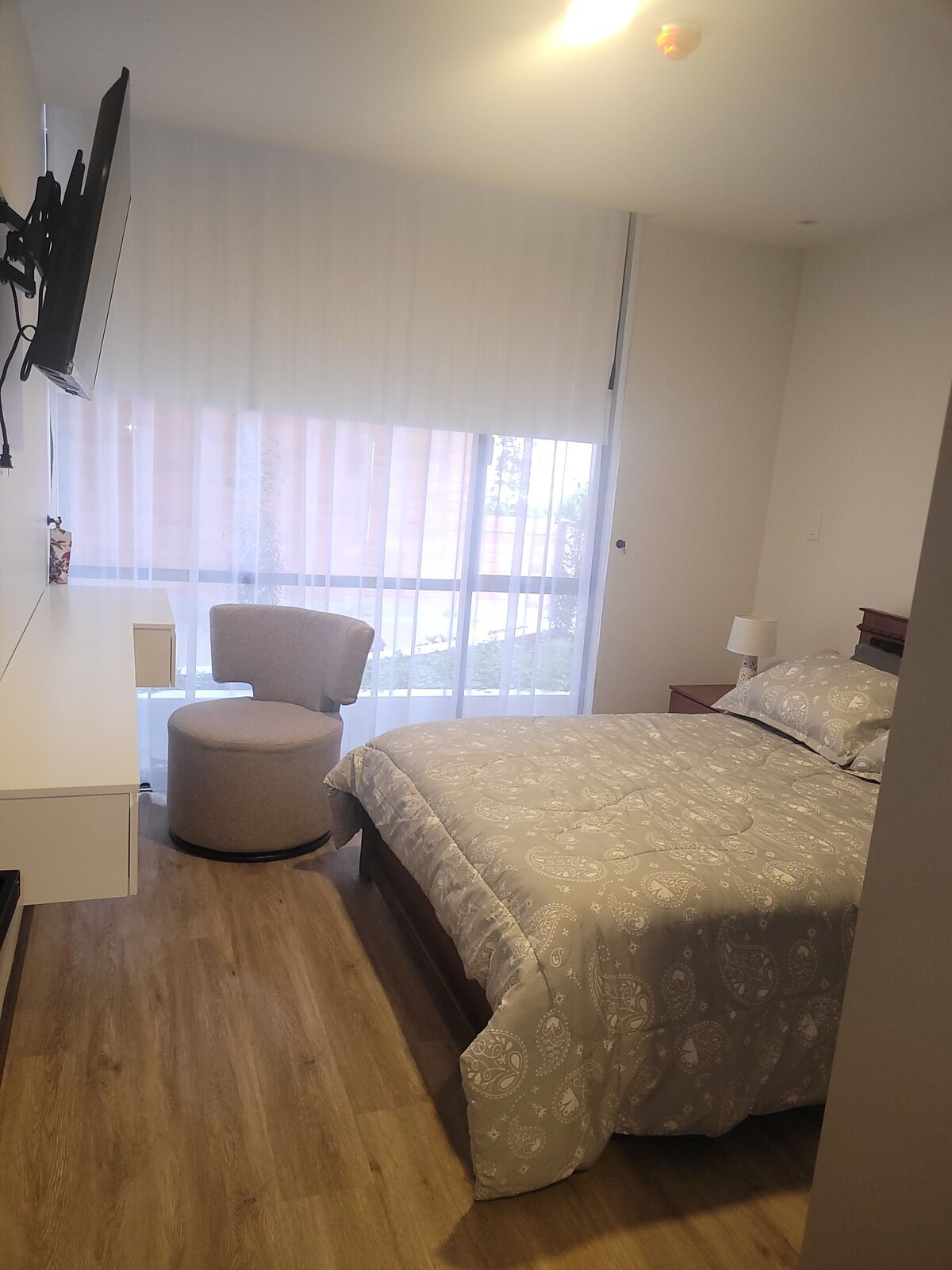 Enjoy a stylish, fully equipped space just 5 minutes from the historic downtown, Mount Sinai Hospital, and the beautiful Parque de la Madre. It's entirely amenity equipped—High-speed Wi-Fi (240 Mb), perfect for working remotely. Garage & elevator. It's just 5-min walk from downtown,Mother's Park, Alejandro Serrano Stadium, Monte Sinai, Supermaxi, banks, etc. Prepare to be captivated by stunning vistas of Cuenca's majestic mountains from the master bedroom. NO SUITABLE FOR CHILDREN or PETS.