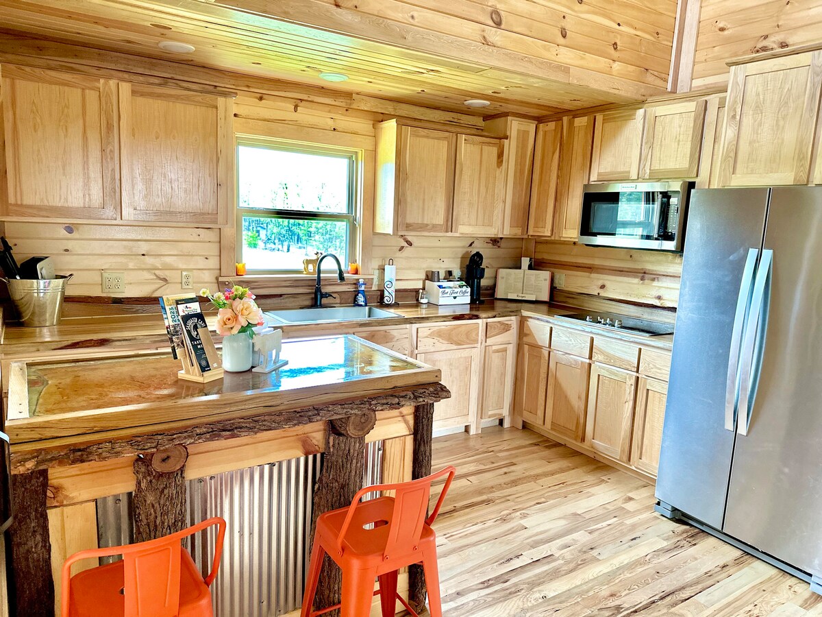 Privat hytte – 2,4 kilometers kørsel til den klare, blå Norfork Lake og Jordan Marina! Kom og udforsk Ozarks! Fisk, kajak, vandretur, udforsk! Privat terrasse med udsigt over skoven! Ingen naboer i sigte! ••INKLUDERET I DIT OPHOLD•• • To kajakker – enkeltmandskajak/tandemkajak med årer • To paddleboards med årer • Fiskestænger, udstyr og net! • Masser af brænde til lejrbål. • Økologisk surdejsbrød! Bådparkering, rund indkørsel, bålplads, terrasse, grill, wi-fi, smart-tv, dvd, Keurig, kaffe og spil.