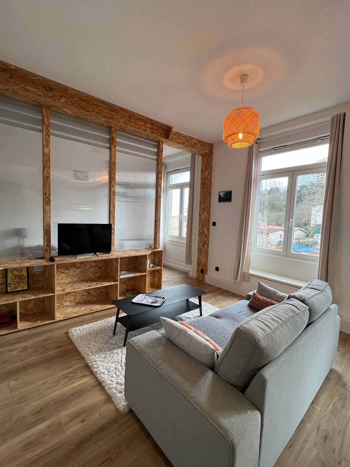 I hjertet af La Croix-rousse, et af de mest populære nabolag i Lyon, tilbyder Marie og Alban denne lejlighed fuldstændig renoveret og indrettet med kvalitetsmaterialer og -tjenester for at tilbyde dig et sted at bo med tidløs chic komfort. Lys, funktionel og behagelig, lejligheden er tænkt som en hyggelig rede under taget af Røde Kors.