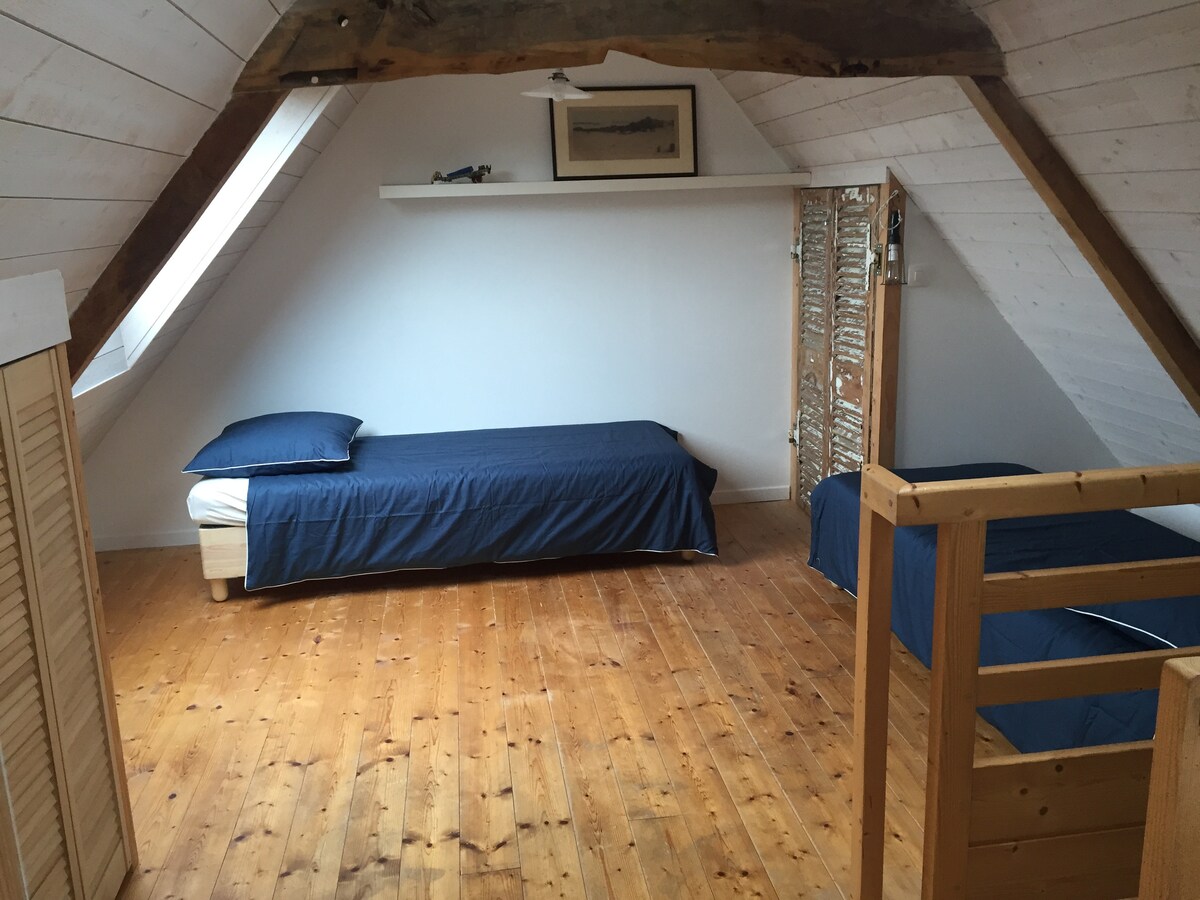 Bienvenue au "penty", petite maison bretonne de caractère. Refaite de A à Z avec des matériaux écologiques. Terrasse privée accolée au penty pour un repas en extérieur. Parking en terre à 20m de la location. Plage à 200m à pied (le Portzic). Quartier résidentiel calme. Mise à disposition d'une dépendance à proximité pour ranger vos vélos ou vos planches de surf. Chauffage principal: poêle à bois (fournis). En juillet et août, réservation du samedi au samedi (7 nuits minimum).Chiens non admis.