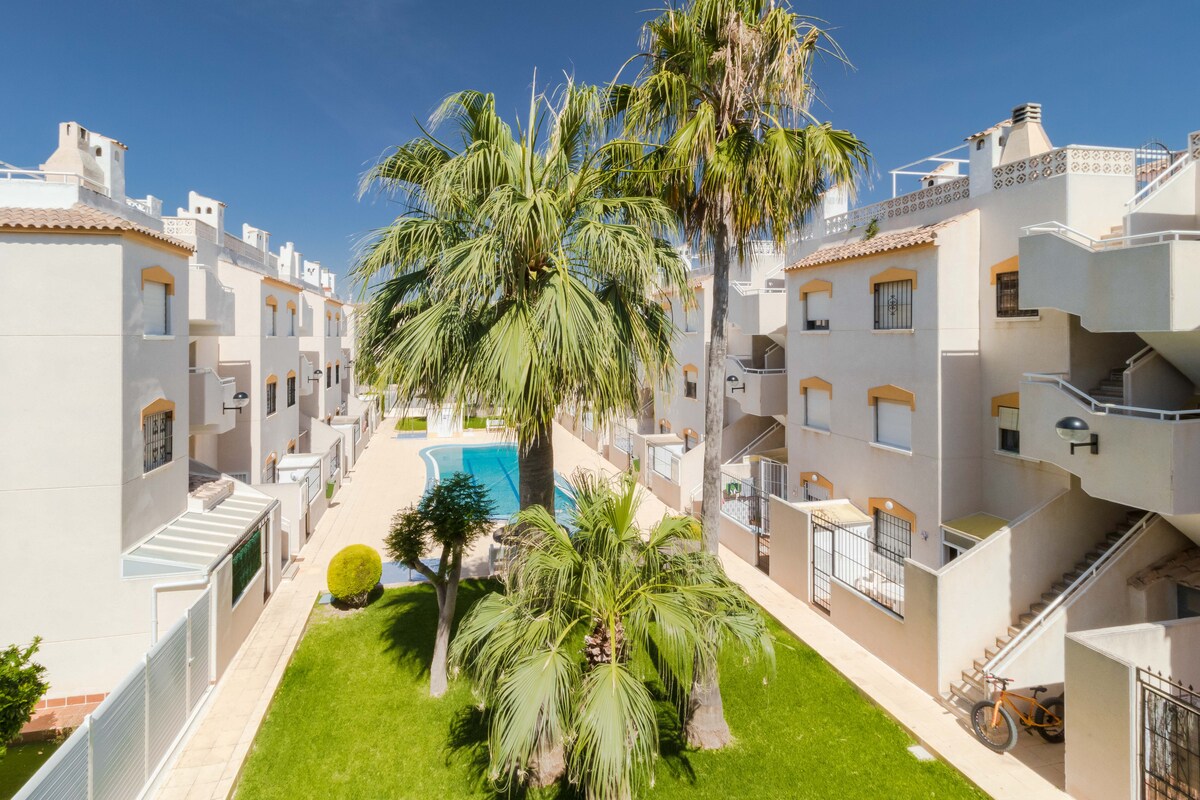 Vores smukke lejlighed ligger 15 minutters gang fra Playa Flamenca, Playa Cala la Mosca og Playa Canina. Beboelsesområdet La Quinta tilbyder indkvartering med gratis wi-fi, aircondition, en udendørs swimmingpool og en have. Der er også gratis privat parkering. Selve lejligheden har spiseplads, et fuldt udstyret køkken og en balkon med udsigt over poolen. Solrig terrasse med fantastisk udsigt over Middelhavet inviterer dig til at nyde en uforglemmelig ferie.