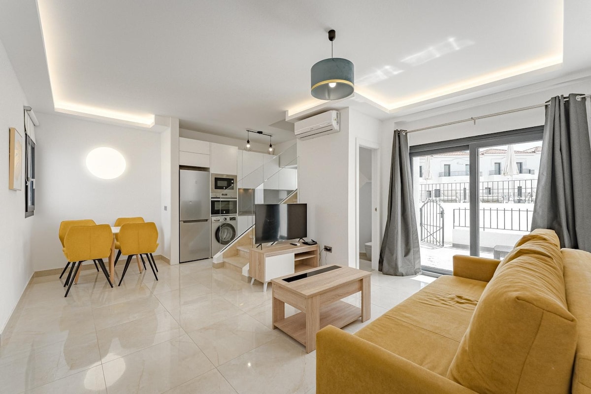Velkommen til vores nyligt renoverede hjem i Oasis del Sur, Tenerife! Vores byhus har udsigt over Golf del Sur's rolige farvande og tilbyder en fredfyldt oase for familier, par eller venner. Nyd to dobbeltsoveværelser, to brusebade og en solbeskinnet terrasse. Slap af med fantastisk havudsigt, en saltvandsopvarmet pool, smart-tv og højhastigheds-wi-fi. Vores velindrettede og funktionelle rum er perfekt til fjernarbejde og sikrer et roligt miljø med fremragende forbindelse.