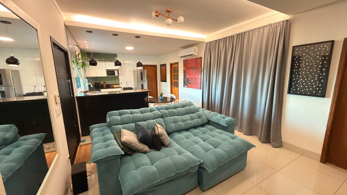 Apto Sofisticado - Novinho em folha (entregue em nov. de 2024) Design de Alto Padrão Localização Privilegiada: Bairro seguro, próximo ao centro e comércios. O que você vai encontrar: Quarto: Cama Queen com roupas de cama em algodão, para até 2 pessoas, ar quente e frio e bancada de estudos. Sala de TV: TV Smart 50”. Cozinha Completa: Eletrodomésticos e utensílios. Lavanderia: tanque de roupas Garagem: Vaga para segurança. Ideal para quem busca conforto e tranquilidade.