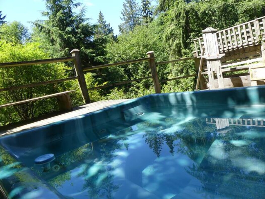 Beliggende på en sandstenstrand, vil du blive vugget af de skvulpende bølger og underholdt af gøende sæler, svævende ørne og muligvis nogle forbipasserende spækhuggere. Med fantastiske solopgange, der vækker dig, og gyldent lys, der afslutter din dag, kan du derefter se på den glitrende skyline i Vancouver, mens du slapper af ved pejsen på din egen private terrasse. Vores gæstesuite er din! Mayne Island venter på dig med sine vandrestier, el-cykeludlejning, kajakroning med mere. Morgenmad bragt til din dør!!
