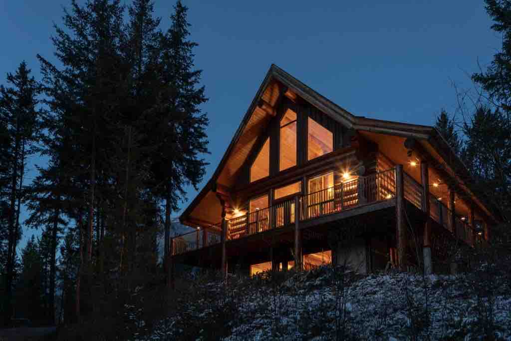 Smuk 2400 kvm bjælkehytte med spektakulær udsigt over bjergene! Dette afsidesliggende tilflugtssted ligger på 3,75 hektar i bjergene nær Golden and Kicking Horse Ski Resort. Særlige detaljer og faciliteter overalt sikrer, at par, familier og venner får et behageligt ophold når som helst på året. BC-provinsregistreringsnummer: H768958222