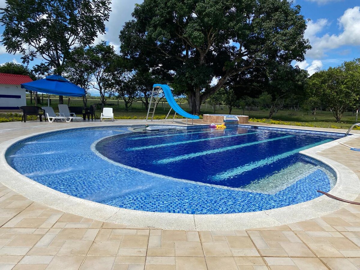 Godset har en stor pool, områder at spise, danse- og legeområder. Det ligger 1 time fra Villavicencio og en time fra den spektakulære Río Güejar. Opdag det smukke landskab på de østlige sletter i Colombia. Her kan du hvile og have store grønne områder, der er fulde af træer og dyr, der omgiver hele gården, såsom fugle, aber i visse årstider, blandt andre.