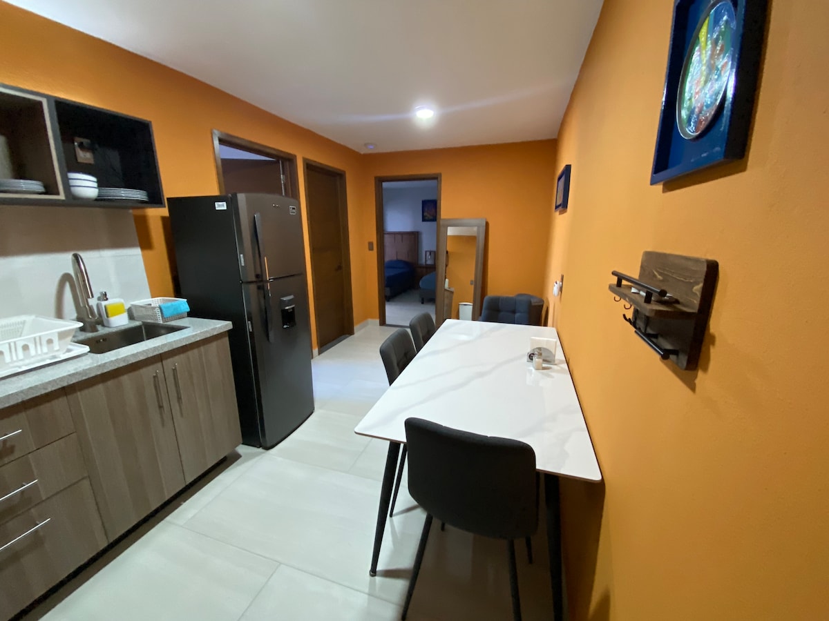 Smuk suite Boutique-koncept møbleret med antikt præg, men fuldt udstyret. Hjertet af det historiske centrum. Smuk lejlighed beliggende på gågaden med den bedste beliggenhed i centrum med fantastisk privat tagterrasse. Lejligheden har plads til 2 personer er fuldt udstyret med privat badeværelse, køkken og spiseplads. Gåafstand til overalt i centrum af Queretaro. Stedet er rent og roligt og fyldt med design. Dejlig terrasse Pengeskab Badeværelse Queensize-seng Spisestue Stue 49
