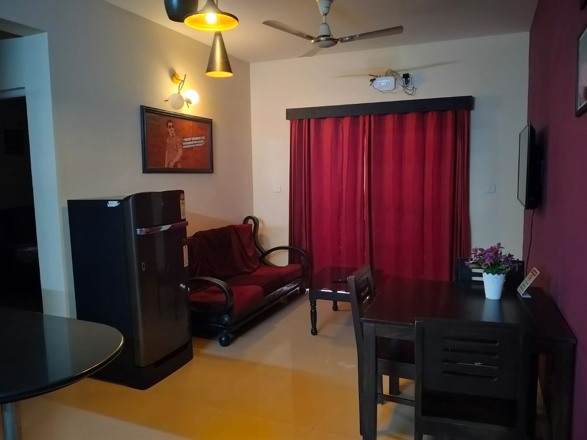 Vores lejlighed ligger i det fredfyldte paradis Candolim og tilbyder den perfekte blanding af komfort og bekvemmelighed for en familie. Dette charmerende feriested ved kysten ligger kun et stenkast fra den uberørte strand, hvilket sikrer, at den beroligende lyd af bølgerne aldrig er langt fra dine ører. Når du træder ind i denne hyggelige studiolejlighed, vil du blive mødt af en smagfuldt indrettet stue, der er badet i naturligt lys, hvilket skaber en varm og indbydende atmosfære.
