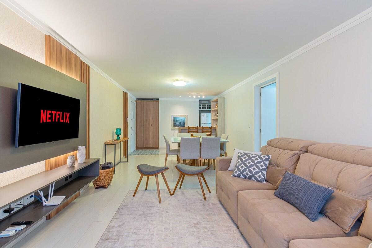 Denne fantastiske high-end lejlighed er blevet fuldstændig redesignet! Det tilbyder 180 m2 og elegance i alle detaljer, store vinduer med eksklusiv panoramaudsigt over Quilombo-dalen, 70"Smart-tv i stuen og 43" i to soveværelser! Derudover er der kun to blokke fra Coberta Street! Da det ligger i centrum, vil du kunne gøre mange ting til fods, have bekvemmeligheden ved at forlade bilen og overveje med fred og ro, alt, hvad Gramado har at byde på!
