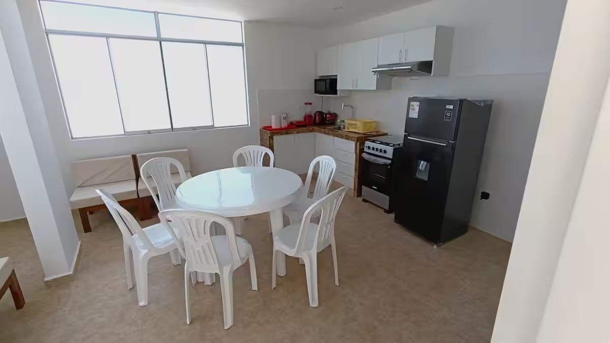 Det er en ideel bolig for en familie på 3 medlemmer. Det er fuldt udstyret med elektriske artefakter og køkkenudstyr. Wi-fi og 1 tv med kabel-tv. Bruser med varmt vand. Både stranden, markedet og klubberne ligger 5 minutter væk til fods. I San Bartolo kan du surfe, dykke, motocross. Hav det sjovt, slappe af og hvile. Den består af en stue, køkken-spisestue, soveværelse og badeværelse.