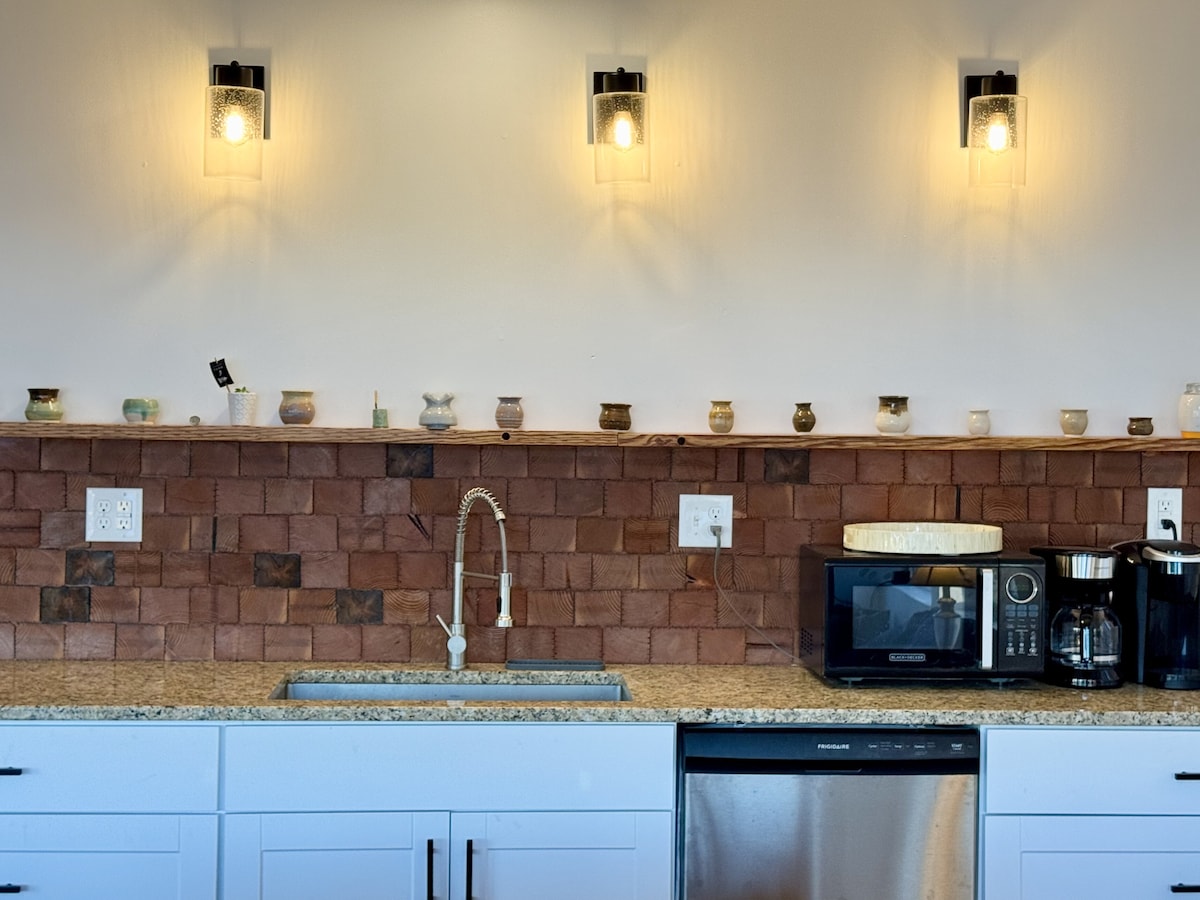 Denne nyligt ombyggede bolig ligger lige ved hovedvejen US-131 og har et spabad til fem personer på en smuk udendørs terrasse med udsigt over en kæmpe baghave. Terra Sol er indrettet med moderne bekvemmeligheder, herunder central luft, stor stue med plads til 6 personer. Nyd at spille spil i Sol Room, et hjemmelavet måltid fra det rummelige køkken! 10 minutter til centrum af Grand Rapids og kun 15 minutter fra GRR Ford International Airport, alt, hvad du har brug for, er lige ved hånden.