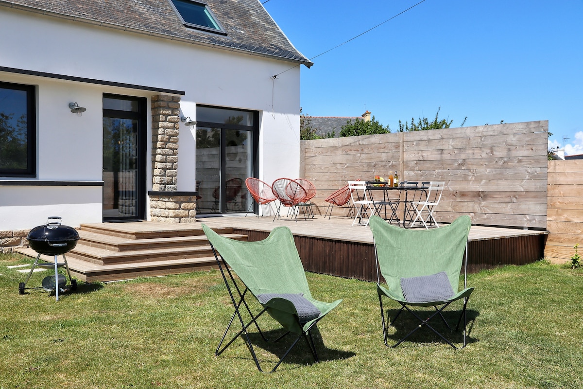 NATURE! ALL INCLUSIVE! Come and unwind and recharge your batteries in this penty nestled in the heart of the woods on a protected site listed as a remarkable area. The house is a 5-minute walk from the GR hiking trail, very close to the sumptuous landscapes of Anse St Nicolas. It is very bright and you can have breakfast facing the sea. Nearby activities: markets, shops, festivities, surfing, canoeing, kayaking, paddleboarding, sailing, hiking, walking, museums...