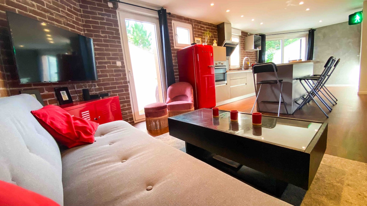 "LA REMISE" Helt ny lejlighed beliggende i gågaden i Capbreton. I nærheden af alle bekvemmeligheder (bageri, mad, bankautomat, forskellige butikker ...). Denne meget lyse gamle garage kan rumme op til 4 personer og tilbyder dig en smuk stue. Du vil nyde charmen ved en badeby samt underholdningen på hovedtorvet, der er inden for gåafstand. Havnen: 1 km, stranden: 1,2 km, Hossegor-søen: 2 km, Bayonne: 20 km, lufthavn: 28 km, bjerg/Spanien 40 min.