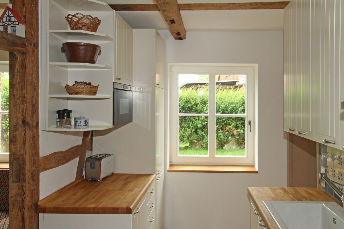 Enjoy your vacation at our idyllically situated old farmhouse, surrounded by nature and far away from the stress and noise of the city! Enjoy the peace and quiet - whether with a good book on the sunny balcony or in the evening with a glass of wine and the sound of the fountain in the background. The farm is situated in a secluded location at the end of a residential street right on the Baltic Sea coast, near the lighthouses of Cape Arkona, set in a large garden filled with flowering plants.