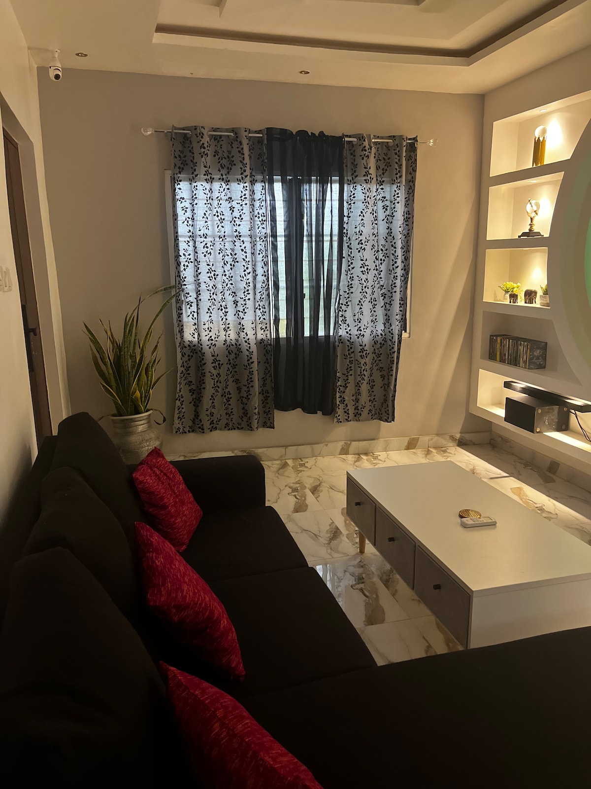 Ligesom i Bob Marleys sang kan du stå op hver morgen og smile med den stigende sol på en af de to terrasser i denne rummelige 3-værelses lejlighed i Cape Coast. Hvis du er heldig, kan du observere de to mindste fugle, der er "lige uden for døren", der ivrig forsøger at indrette deres rede, men fejler hver gang :) Selvom du vil høre naturen "synge søde sange af melodier rene og sande", er du 5 minutter væk fra byens centrum og 10 minutter væk fra Cape Coast Castle med offentlig transport.