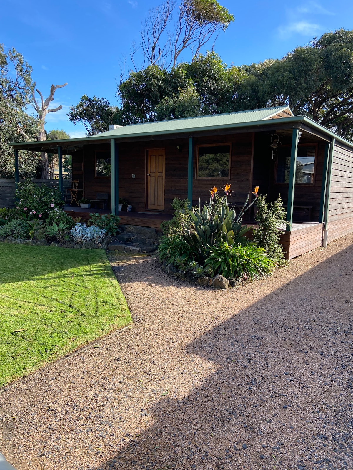Moderne privat gæstehus ved kysten, kun 500 meter fra fantastiske Surf Beach, Phillip Island. Helt selvstændig, adskilt fra hovedhuset, adgang via sideindgang, gratis parkering på gaden. Separat badeværelse og fuldt funktionelt køkken. Spiseligt haveområde, udendørs veranda og bålplads. Gangafstand fra en vinhandel og pizza- og kaffebiler, offentlig transport og cykelstier. Perfekt til par, sikkert for enlige, indbydende LGBTQIA+, seniorer og...hundevenlig! (Beklager, ingen katte)