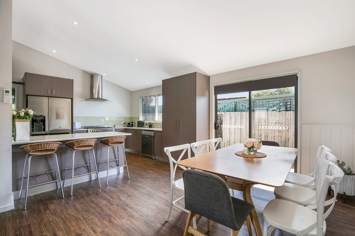 This stylish and unique place sets the stage for a memorable trip where you can work, relax and enjoy everything that Phillip Island can offer. Lovely modern home just 12 minutes walk from the famous Woolamai surf beach and the same from calmer and quieter safety beach perfect for families for a range of water activities. We are just 2 minutes walk from the local restaurants, cafes and local supermarket. And it's only 15 minute drive to Cowes. Bike track will take you to Newhaven and San Remo.