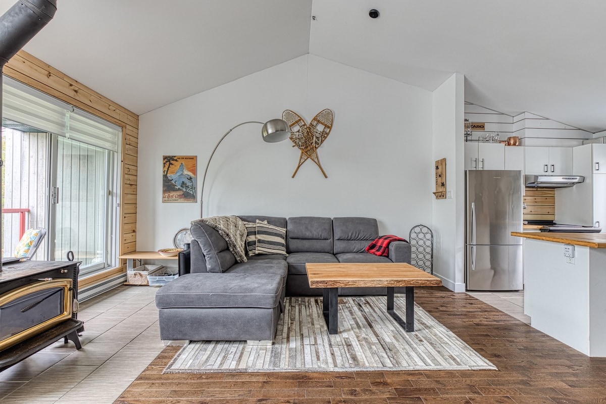 Profitez de votre séjour dans un magnifique condo avec vue sur les pentes de ski. Le condo est situé à 5 minutes à pied de la montagne de ski. Le condo inclus; 1 chambre avec lit queen, 1 chambre avec lit double, 1 divan lit, 1 salle de bain incluant une douche, laveuse et sécheuse, un poêle à bois avec bois ansi qu’une air climatisé , 2 espaces de stationnements et le Wifi rapide. Activités à proximités : Ski alpin, Golf, Vélo de montagne (Empire 47) et le Parc National de la Jacques Cartier.