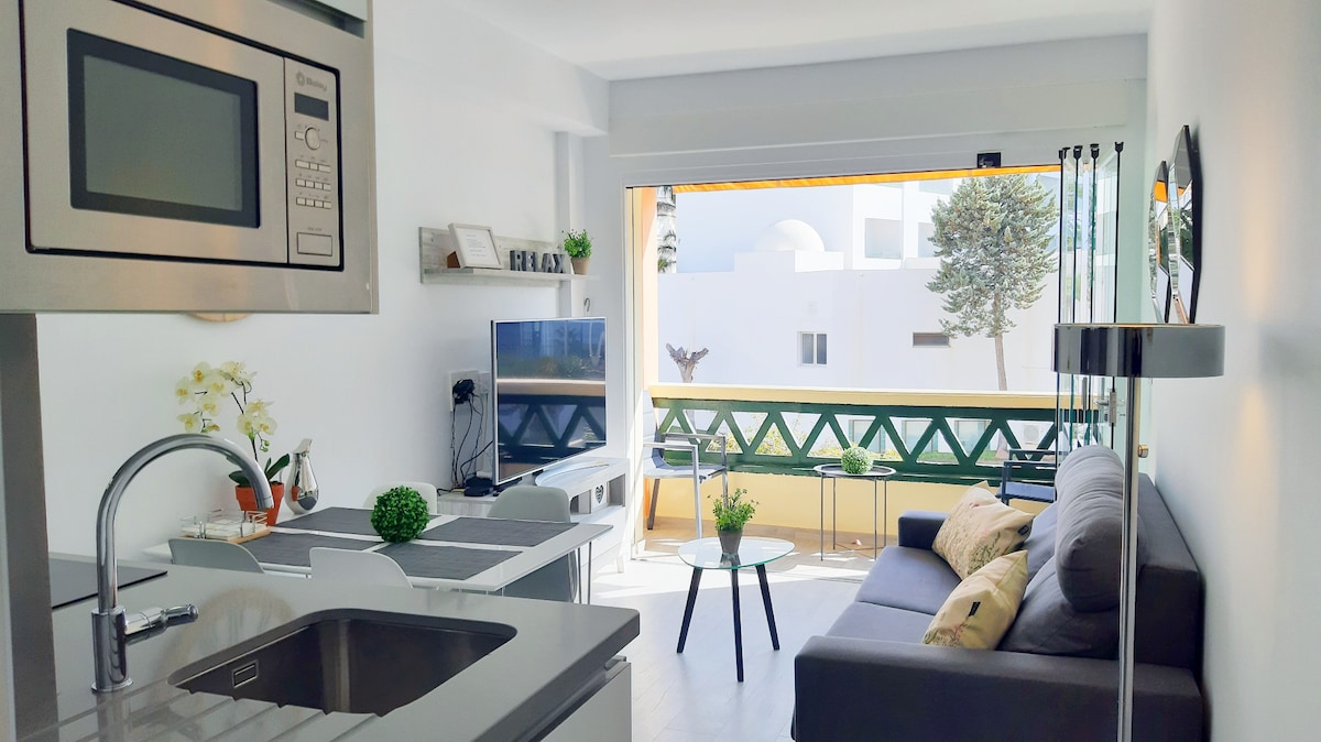 Nyrenoveret lejlighed med to soveværelser få skridt fra den populære 'Torrecilla strand'. Fra den smukke balkon, der vender mod øst, og som er adskilt fra stuen med glasdøre, der kan åbnes, kan du nyde en solrig morgenmad med en vidunderlig udsigt over havet. Om eftermiddagen er det et perfekt sted at hvile sig fra den spanske sol. Lejligheden er fuldt udstyret, herunder vaskemaskine, klimaanlæg, opvaskemaskine, ovn, mikrobølgeovn og internationalt tv.