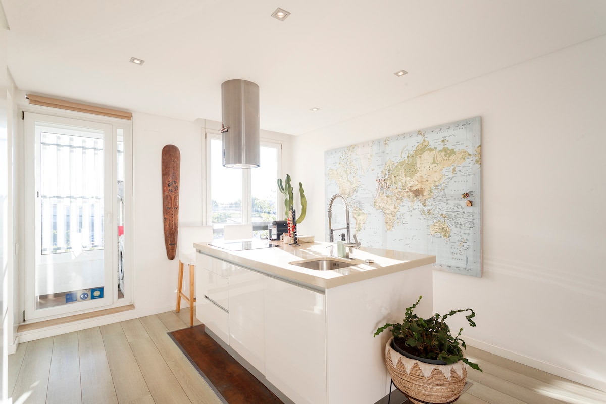 Luksusloft, der kan sammenlignes med et 5-stjernet hotel. hele loftet. Jeg laver digitale rundvisninger via WhatsApp eller en anden lignende app, og jeg sender forslag og råd hver dag. Tilgængelig 24 timer i døgnet. Lejligheden ligger i et fremragende kvarter, tæt på togstationen og stranden. Her er det som 1960. Ekstremt sikker. Den repræsenterer det gode gamle Portugal. 3 minutters gang til togstationen, og en vej til Lissabon på 35 minutter. Havet er 3 minutter væk. Vidunderlig strand. Praia das Avencas. Har du særlige behov, tager jeg mig personligt af det.