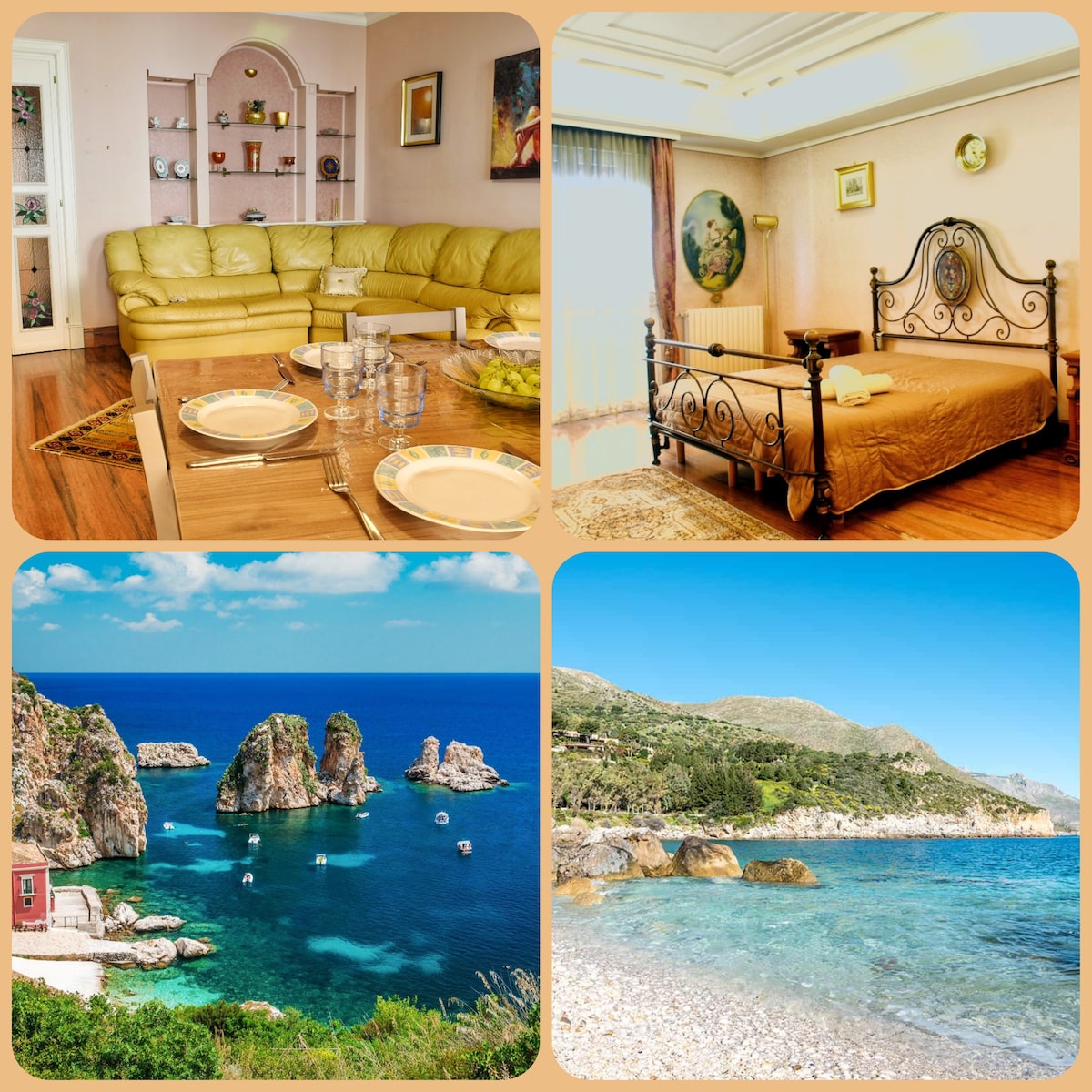 170 meter fra havet mellem Tonnara og Zingaro naturreservatet, der skiftevis har forskellige bugter, en etage og udstyret med myggenet. Haven, med udendørs bruser, omgiver hele huset, med en praktisk grill med vask, liggestole, sofaer og udendørs borde, hvor du kan spise frokost, middag eller tilbringe behagelige aftener Nede ved havet to små bugter til eksklusiv brug af beboerne, der kan nås via stenbelagte stier, i den nærliggende Baglio, Bar Tabacchi, Pub, Restauranter, pizzeriaer, marked, ATM
