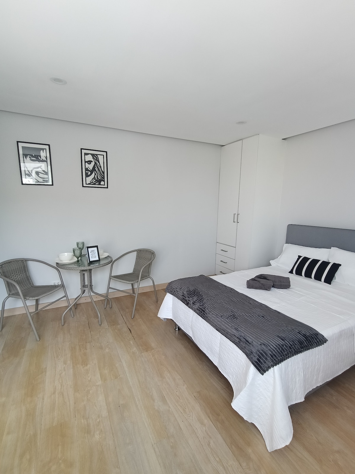 Moderne fuldt møbleret lejlighed, perfekt til længerevarende ophold. 65" smart-tv med Netflix og Disney+, højhastigheds-wi-fi, fuldt udstyret køkken med espressomaskine, vaskemaskine, queensize-dobbeltseng, varmt vand og balkon med udsigt over gaden. Bygningen tilbyder pool, fitnesscenter, kontorfællesskab, indtjekning uden vært døgnet rundt, parkering og sikkerhed. Gratis kaffe og småkager er inkluderet.