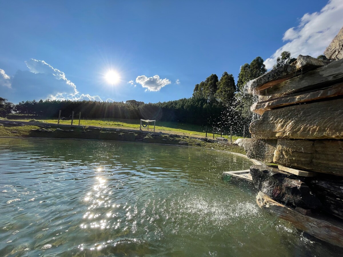✨FERIEPAKKER✨ Velkommen til Encounter of Dream Ranch, her finder du: ✔️Hus til op til 14 personer ✔️ Brændeovn med spole ✔️5 soveværelser med loftsventilator ✔️Badeværelser - 5 toiletter og 6 brusere, begge i separate hytter. Der er 4 elektriske brusere og 2 med en slange; ✔️Gourmetområde med hængekøjeområde, jordbrand, 2 brusere og grill 41"✔️tv ✔️Wi-fi Komplet ✔️ sæt, bortset fra vandfaldshåndklæder ✨Vi udlejer til arrangementer og kurser✨
