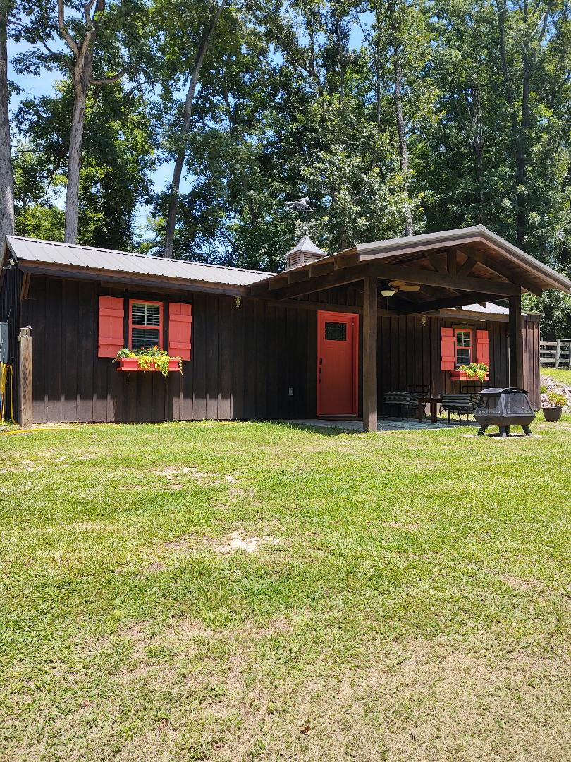Vores gæstehus ligger på 4 stille indhegnede hektar omkring 100 fod fra vores hjem. Vi er cirka 15 minutter fra Pinehurst. Vores store, venlige hunde byder dig velkommen, når du ankommer, og deler det samme indhegnede område som gæstehuset. Vores ombyggede lade har et komplet køkken, en queensize-dobbeltseng og en lille sovesofa. Kaffemaskine, vinkøleskab, bålplads med Adirondack-stole til et glas vin om aftenen eller til at se ildfluer. Saltvandspool fra midten af maj til midten af september. Privat spabad til to personer. Gebyr for kæledyr for hunde. Beklager, ingen katte.