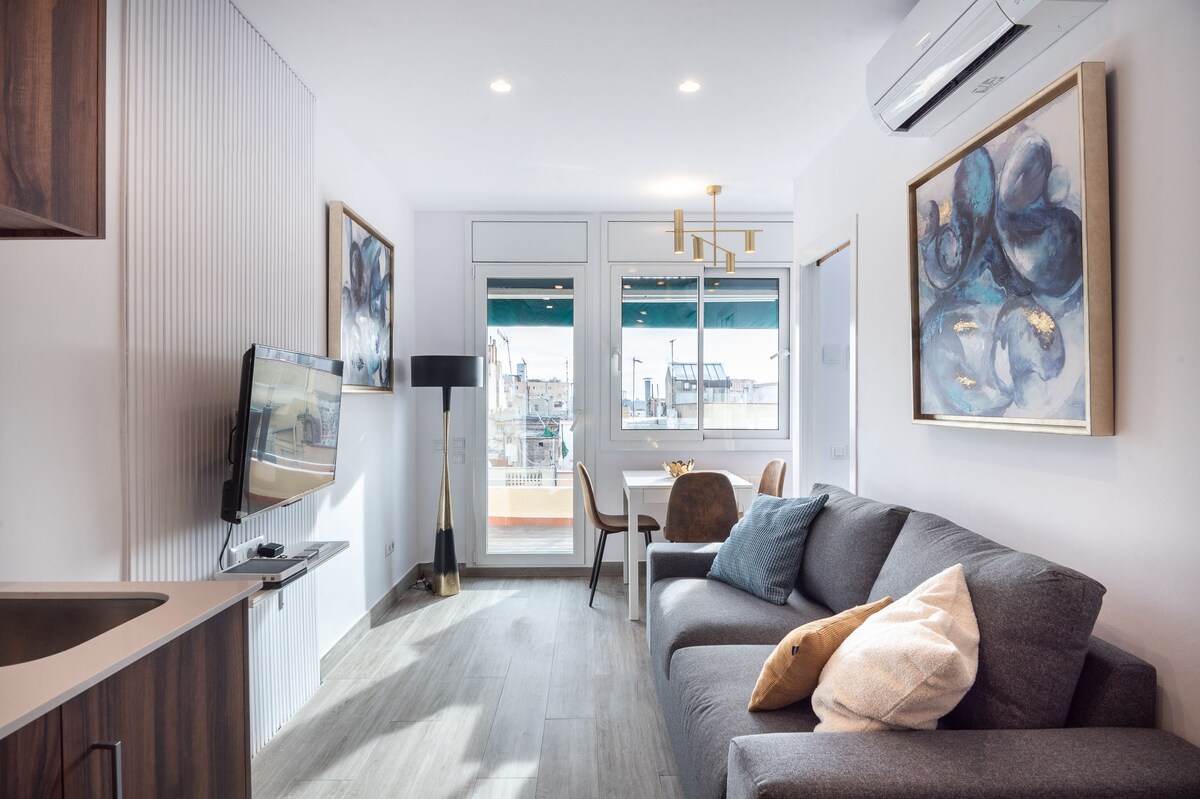 Velkommen til "Little Barrio", min boutique taglejlighed med privat terrasse. Med udsigt over byen, Sagrada Familia og bjergene. I en modernistisk bygning med concierge. Ved siden af ikoniske Passeig de Gràcia, Plaça de Catalunya og "La Rambla". - Ikke egnet til festgrupper/gæster. - Familievenlig: Pack n Play, høj stol osv. - Oplev også vores egne lokale guider på vores hjemmeside 'Homecelona Apartments' - Turistskat, der skal betales separat: 6,25 € /nat/gæst (>16 år) maks. 7 nætter.