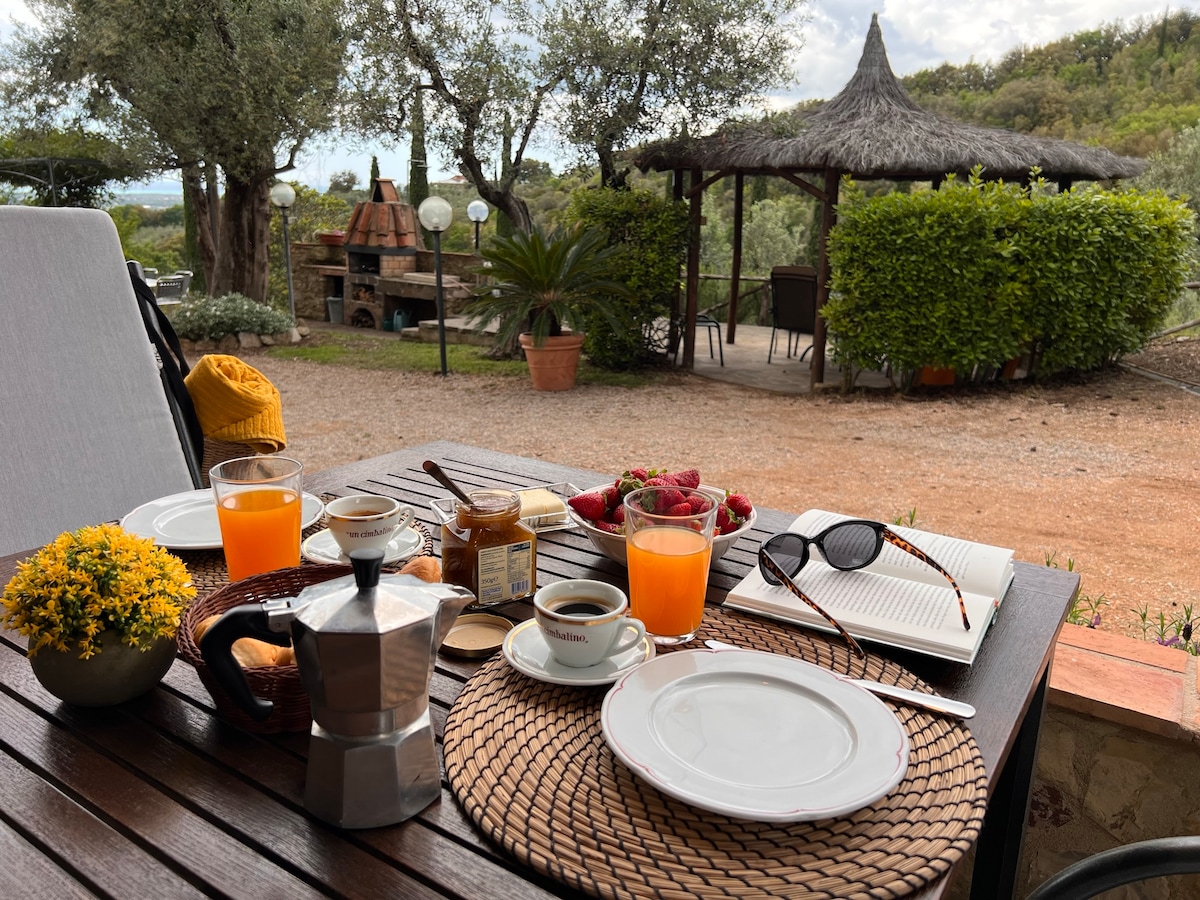 Casa del Poggio (huset på bakken) ligger i bakkerne i Castagneto Carducci og er en del af vores økologiske gård. Det ligger i et fredeligt landskab omgivet af olivenlunde, vinmarker og skov og har en smuk udsigt over havet og slottet Castagneto Carducci. Samtidig giver dens beliggenhed dig mulighed for at nå landsbyen på kun 10 minutter til fods og strande i Marina di Castagneto på 10 minutter i bil eller bus.