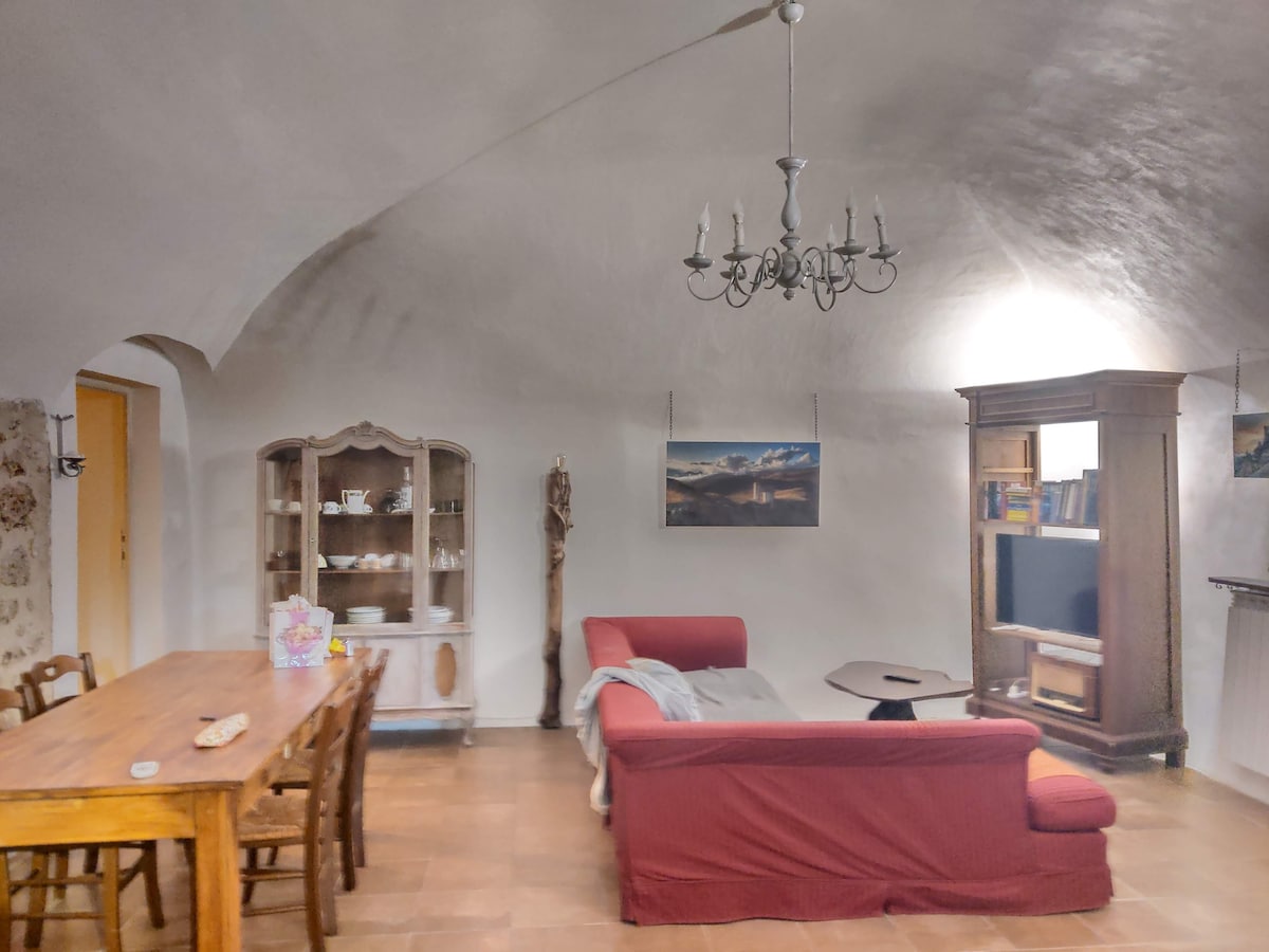 Tidligere hjem for Todd Thomas Brown, en amerikansk kunstner, der ankom til Fontecchio i 2019 for at lancere kunstnergenbosættelsesinitiativet, nu kendt som "The Fontecchio International Airport". Her er en lejlighed, der er udformet med kærlig sans for detaljer, belysning, kuraterede møbler, prydet med originale kunstværker og med hvælvede lofter overalt. Plus en balkon og en indre gårdhave. Mere om vores landsby? Søg på nettet efter "Kunstnere i Fontecchio".
