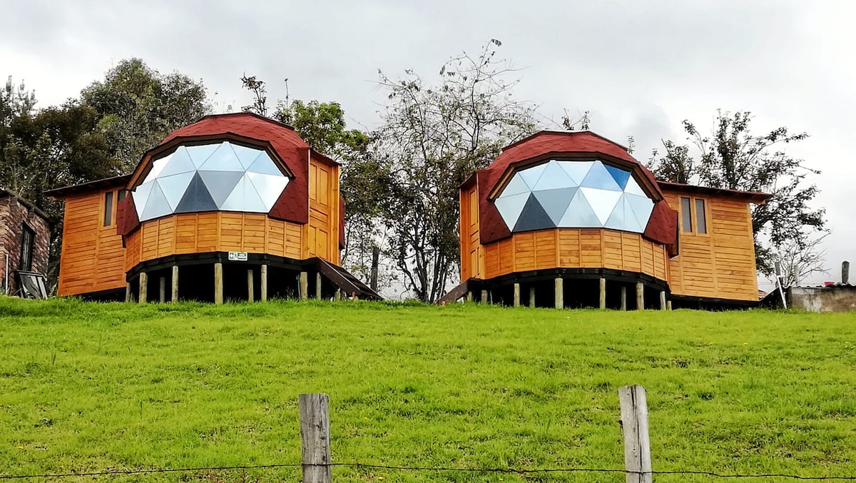 Hvil dig i en hyggelig kuppel kun 5 minutter fra hovedparken. Omgivet af haver og en lille frugtplantage tilbyder denne bolig ro og Wi-Fi, der er ideel til par eller små familier. Nyd aktiviteter i nærheden: en zoologisk have med ekstremsport, vandreture, Tota Lagoon med sin akvatiske charme og regionens traditionelle madrestauranter. Tilgængelig med offentlig transport og en privat parkering til rådighed. Perfekt til at udforske Boyacá og koble af i unikke naturomgivelser.