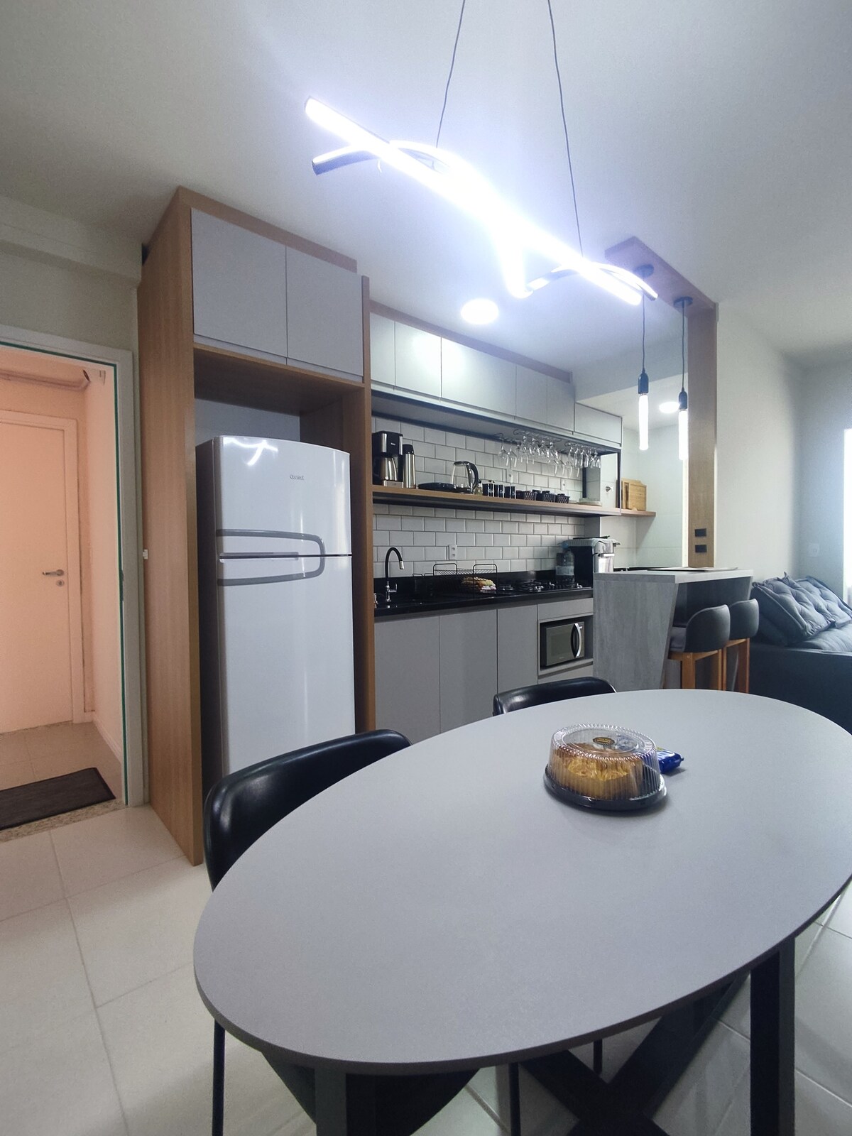 Moderne atelierlejlighed, beliggende 300 meter fra Vila Germânica Park - hvor der afholdes arrangementer som Oktoberfest. Omgivet af restauranter og barer, ligger den tæt på Ramiro Ruediger Park, det vigtigste område for fritidsaktiviteter, vandreture og motion i Blumenau. Alt for din komfort: 43" smart-tv, split aircondition, 240mb fiber-wifi, komplet køkken med Brastemp køleskab, mikrobølgeovn, komfur, kaffemaskine, ovn, vaskemaskine med tørretumbler, garderobeskab og selvfølgelig en indbydende queensize seng!