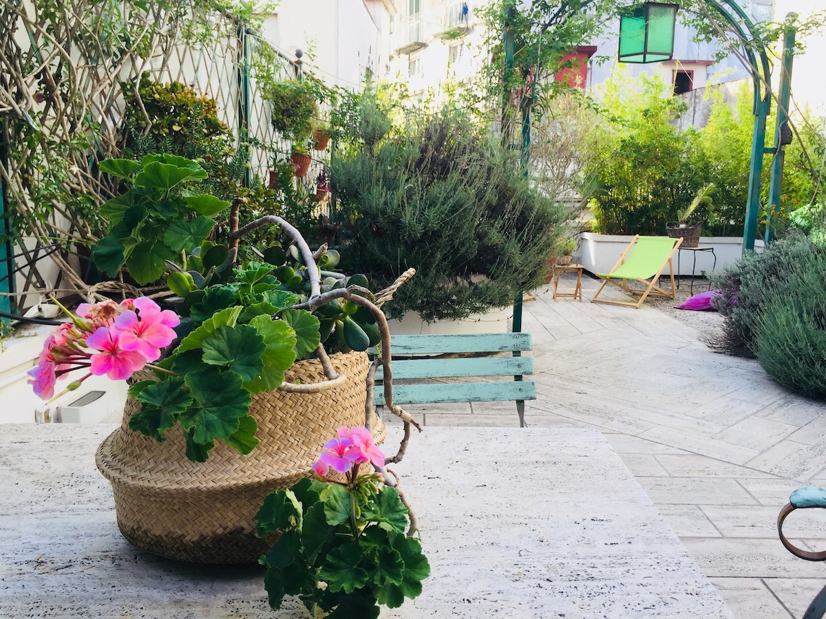 Lejlighed perfekt til et par eller til en lille familie. Elegant og fuldt udstyret med et stort tag med panoramaudsigt. Den ligger foran havet og slottet. Kun 5 minutters gang til Piazza del Plebiscito og havnen, desuden ligger den tæt på busstoppesteder, markeder, restauranter og metrostationen. Mange års erfaring med at være vært for mennesker fra hele verden.