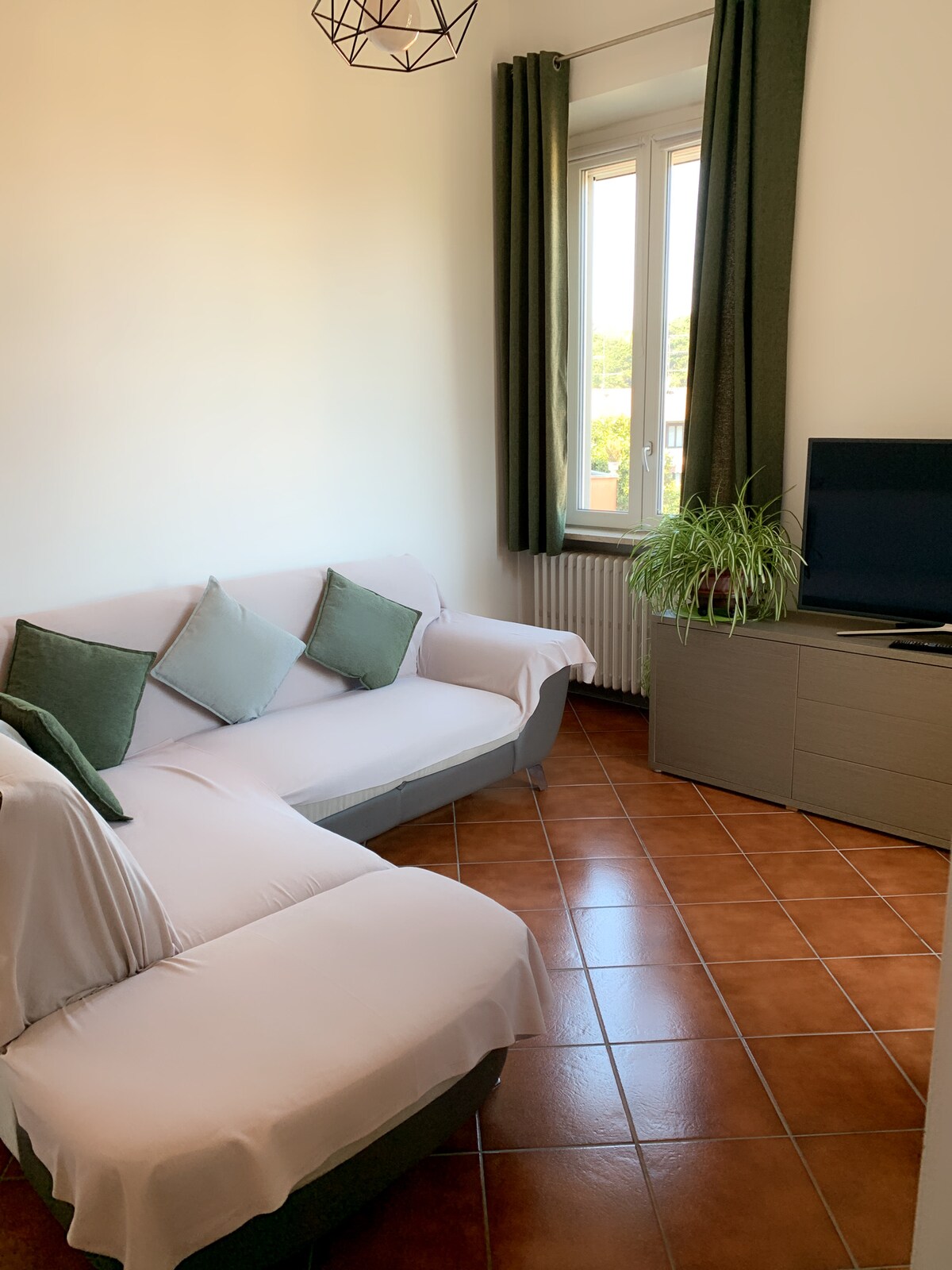 Corte del Sole har en stor lukket gårdhave med en springvand, bænk og spil til børn, privat og overdækket parkering til biler eller andet. Lejligheden har en stor terrasse med bord, huset er perfekt renoveret, og faciliteterne er nye. Rummet har en rolig terrasse med udsigt over den indre have. Vi vil med glæde tage imod dig i vores hjem og foreslå de mest sjove aktiviteter, du kan lave i området. Indtjekning med vært på stedet.