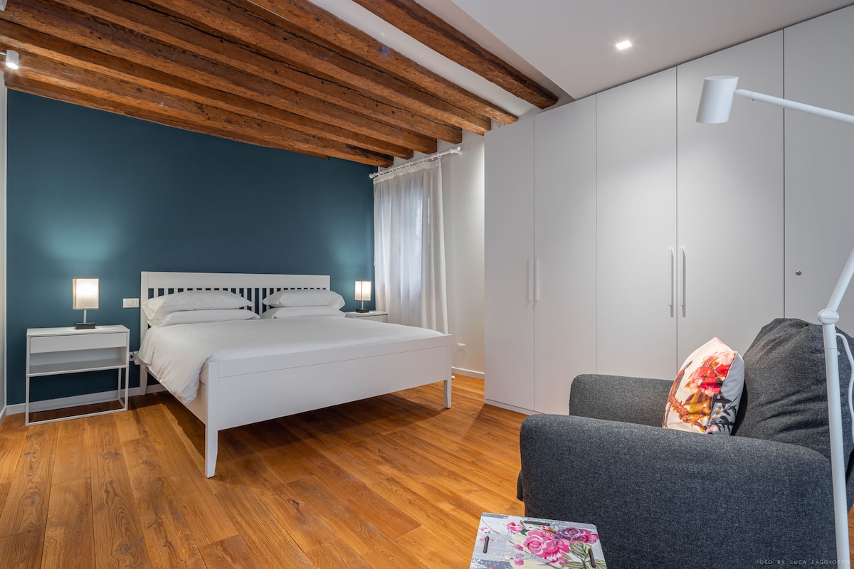 Den er renoveret med omhu og har fritliggende bjælker og gulve i venetiansk stil. Det er rummeligt, meget lyst, beliggende på anden sal (uden elevator) med vinduer med udsigt over både kanalen og en behagelig gårdhave. Det ligger i hjertet af det ægte Venedig, ikke overrendt af turister, men kun 10/15 minutters gang fra de mest berømte turistdestinationer og 5 minutter fra vaporettoen. Hurtig Wi-Fi-forbindelse. (registreringskode 027042-LOC-08782 CIN IT027042C2OW47EQ2K).