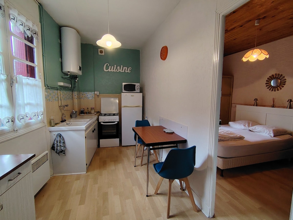 I byens centrum i et lille pavillonhus i stueplan, beliggende i en rolig have, nyetableret lejlighed på 27m2. I stueetagen: Køkken, komplet badeværelse, separat toilet, stue-spisestue med sovesofa, stor seng på første salet i loftsrummet med adgang via en udtrækkelig stige Opbevaringsmulighed for cykler og ski .. Samt en indrettet have. De 10 euro dækker levering og vedligeholdelse af sengetøj, du er selv ansvarlig for at holde lejligheden ren.