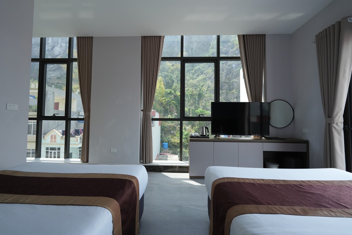 Hvis du leder efter et virkelig stille sted at bo i Cat Ba, væk fra trafikstøj og overfyldte turistområder, er Shalva Homestay designet til dig. Dette private dobbeltværelse har en fredelig udsigt over bjergene, naturligt lys og et varmt interiør lavet af bambus og træ. Boligen er enkel, ren og beroligende – ideel til par eller små familier, der værdsætter hvile, privatliv og et langsomt liv.