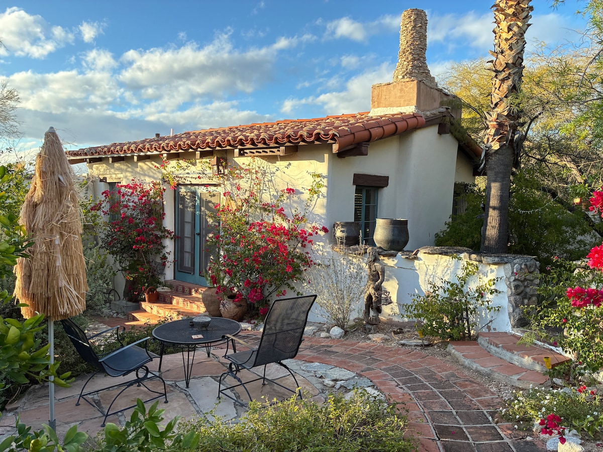 Upper Little Bird Hill is a spacious studio guesthouse perched on a 4 acre hilltop in the sweet spot of the Old Catalina Foothills. Quiet, quaint, and thoroughly charming, you're only a 15 minute drive from downtown Tucson, the UofA, and 4th Avenue/Congress shopping/dining districts and mere minutes from upscale fine dining, shops, trail heads, and bike paths. The king size bed gets RAVE reviews but the couch is also comfy if an extra sleeping space is needed.