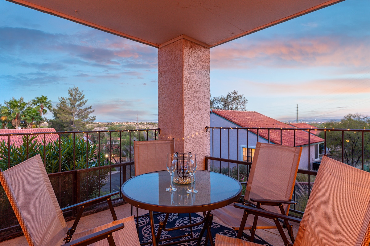 Oplev det bedste af Sonora-ørkenen fra denne moderne lejlighed med faciliteter i resortstil. Saguaro Escape er en rummelig lejlighed med 2 soveværelser/2 badeværelser beliggende i Sonora-ørkenen ved foden af de betagende Catalina Foothills med udsigt fra alle værelser. Nyd godt af adgang til to pools, tennisbaner og fitnessrum med privat direkte adgang til Ventana Canyon trailhead. Uanset om du er her i en weekend eller et par uger, er Saguaro Escape den ideelle base, når du besøger Tucson.