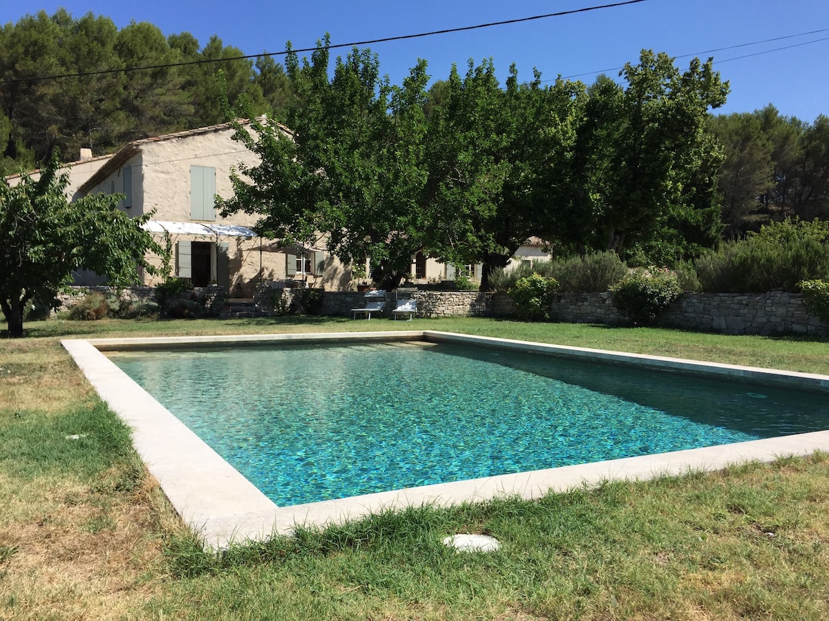Gîte du Pays des Sorgues med swimmingpool og have