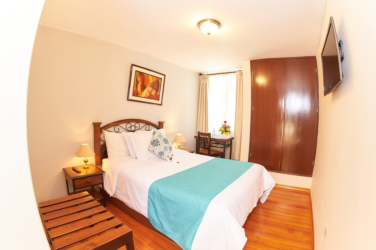 Habitaciones con cama grande y baño privado en hotel, ubicada en avenida principal de Arequipa. Cerca de centros comerciales, restaurantes, bancos, además de la Plaza de Cayma y Yanahuara. Ideal para parejas que buscan privacidad, comodidad y fácil acceso a la ciudad. Como complemento, también ofrecemos habitaciones con cama doble, perfectas para viajes familiares o grupos que deseen compartir estancia en un mismo lugar.