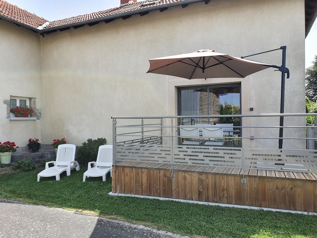 Landsted med terrasse, rolig natur i Cantal