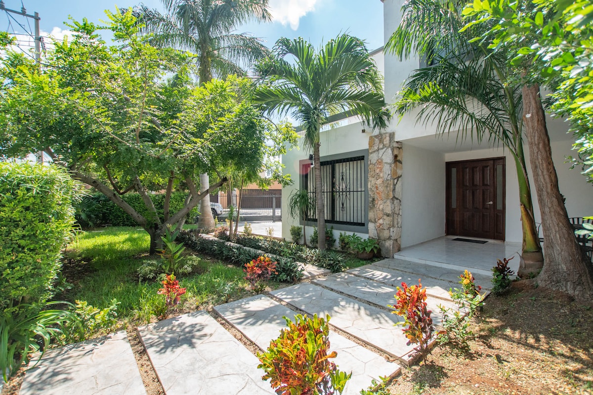 Vores hus er nyrenoveret med en yucatecansk stil, der er specielt designet til at modtage vores gæster. Beliggende i et strategisk og meget privilegeret område i Mérida! med hurtig adgang til hele byen og de vigtigste veje. Huset har et stort udvalg af regionale træer. En oase i byen! Den har 3 værelser, og områder designet til at fremme hygge. Det har en frem og tilbage have! Samt en grill i poolområdet. Vi vil meget gerne byde dig velkommen!