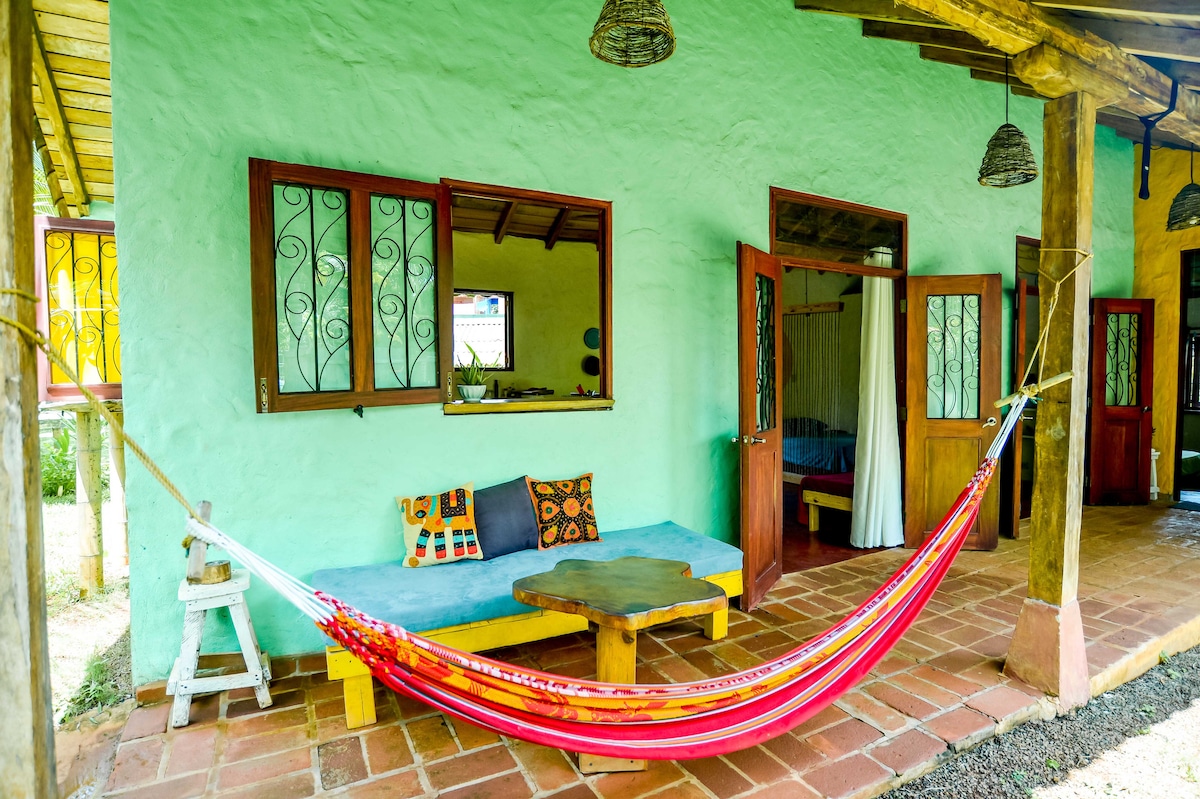 Dit miljøvenlige hjem væk fra hjemmet. Fordyb dig i en ægte økologisk nybygget 2 le el Villa. Naturlig brise og lys, privat terrasse, stille og sikker..natur med al komfort, Villaen ligger i en frodig have kun 150 meter fra stranden, wi-fi, køkken, stue og et smukt og stort badeværelse med et unikt arkitekturdesign, herunder runde vægge og buede vinduer. Vægge lavet af naturressourcer som jord, taget er dækket med den traditionelle nicaraguanske "Rancho-stil".
