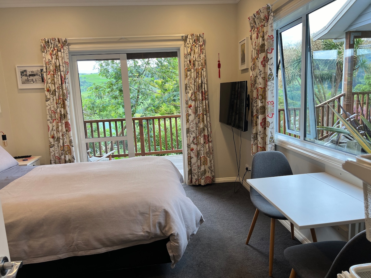 Vores Waverley-studie er lys, solrig og moderne med den mest fantastiske udsigt over havnen. Vågn op til den smukke solopgang over Otago-halvøen. Denne bolig får sol hele dagen med en fantastisk udsigt helt ned til havet og tilbage til byen. Der er privat adgang til studiet, som ligger under vores familiebolig. Der er kun ekstern adgang til studio-værelset. Det er selvstændigt med køleskab, kande, brødrister, mikrobølgeovn, badeværelse, garderobe og en stue. Den har en luksuriøs queensize-dobbeltseng.