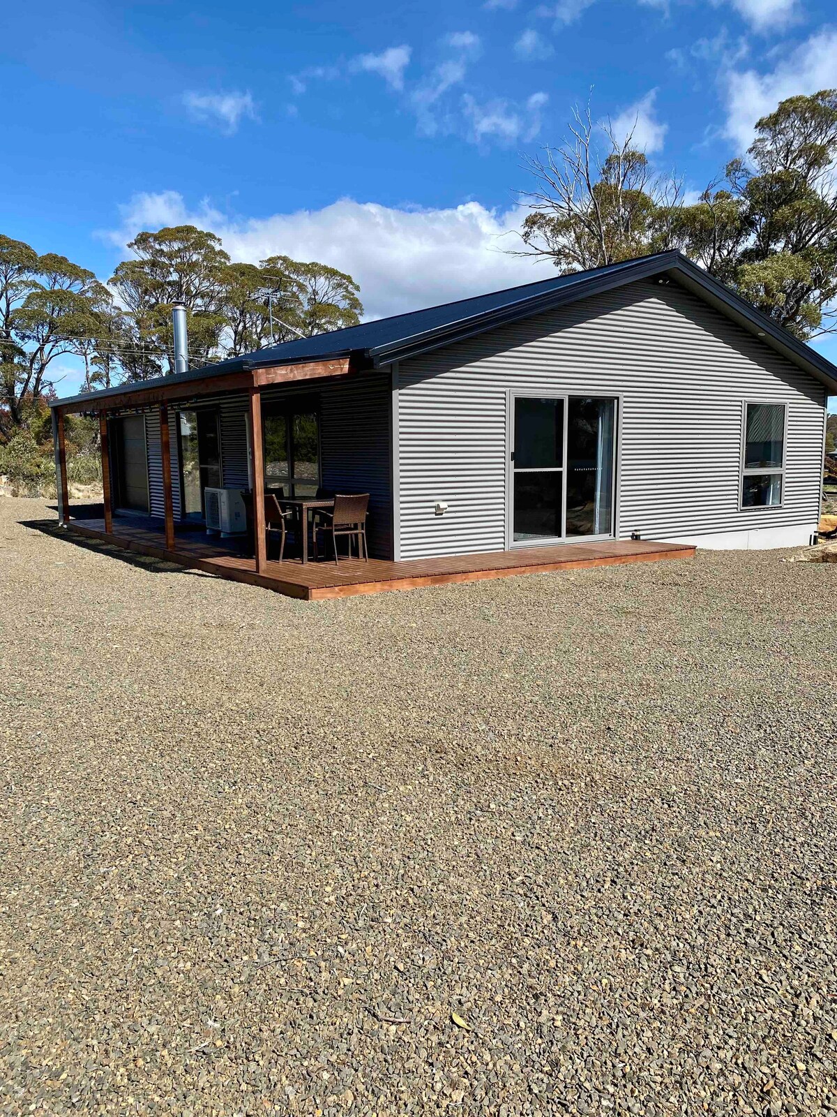 Hyggeligt, finurligt lille skur bygget i mange weekender .. et arbejde af kærlighed! Fem minutters kørsel til Great Lake Hotel . Ideel til en romantisk udflugt for to eller 2 fiskekammerater og en ven i enkeltværelse med adgang udenfor med eget toilet. Et sted at slappe af ,mærke fred og ro, læse på verandaen eller inde ved trævarmeren, som KUN er opvarmning, er du okay med det? Dette er IKKE ØJEBLIKKELIG BOOKING. Læs hele beskrivelsen. Skal gå op ad trapper til soveværelser. Hundevenlig KUN efter ansøgning