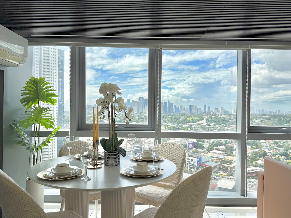 Stay in this unique and stylish mid-century modern LOFT with AMAZING & UNOBSTRUCTED SUNSET and CITY VIEWS in Gramercy Residences, a 5-star condo centrally located in Poblacion. Enjoy this brand-new, centrally-located 1 Bedroom Loft w/ stunning design & original artworks. Located in a high floor w/ 5-star amenities, fully-fitted kitchen, balcony & everything you need for a perfect stay: 300Mbps Fiber WiFi, Netflix, 55-inch smart TV, infinity swimming pool, modern gym, sauna & 24/7 concierge etc.
